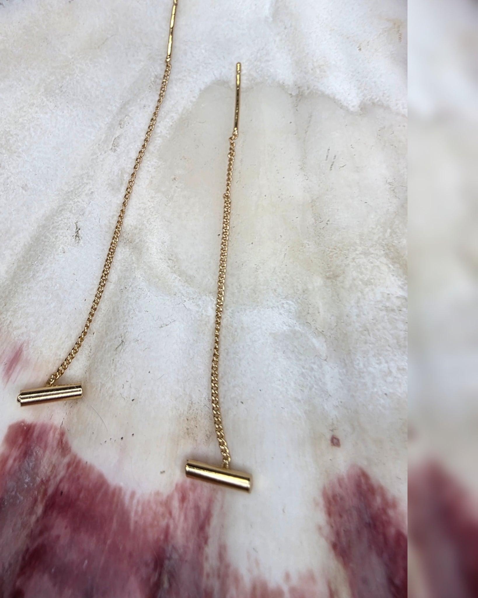 Be sure to use the little silicone earring back pressed gently up against back of the ear to keep this chain from slipping out of your ear. Don't pull too hard the chains are dainty. These can be worn in any of your piercings to create a unique look.